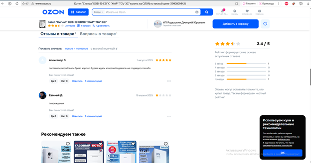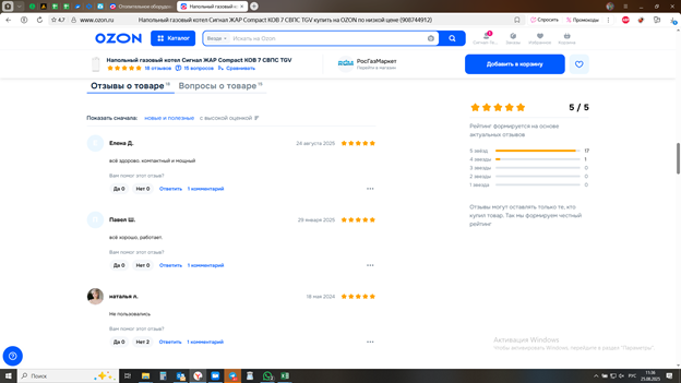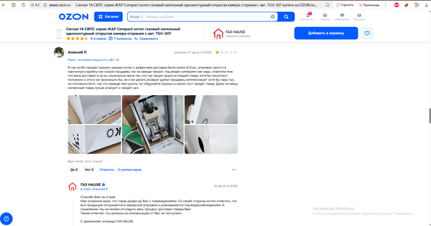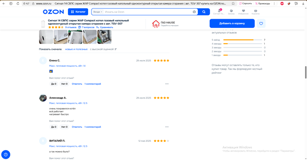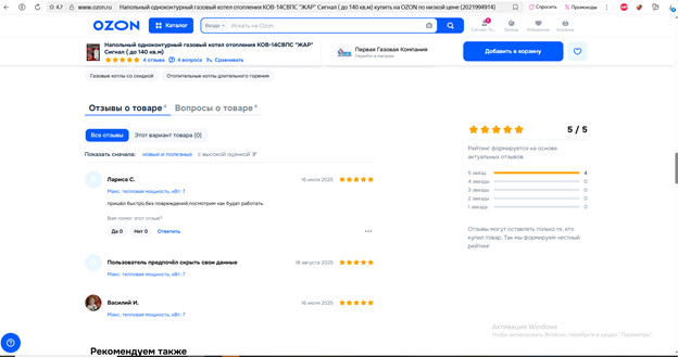 Как и обещали, теперь мы тщательно следим за рейтингами котлов "Сигнал" на разных площадках и оперативно реагируем на любые отзывы Клиентов.