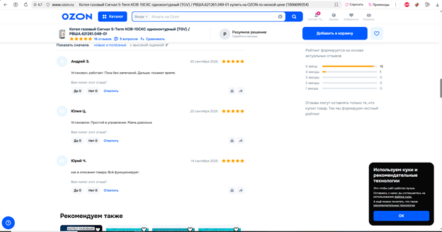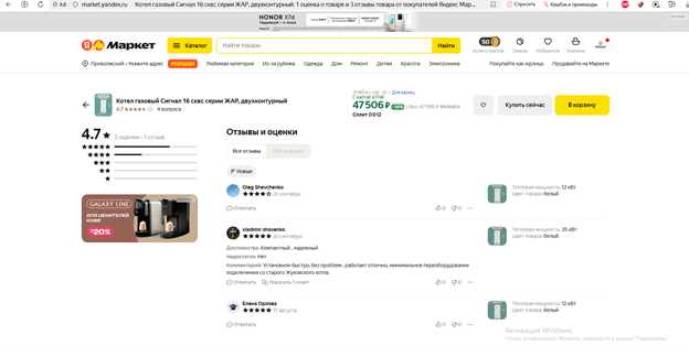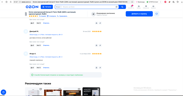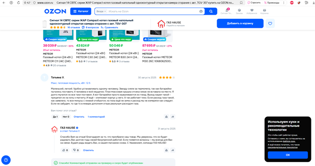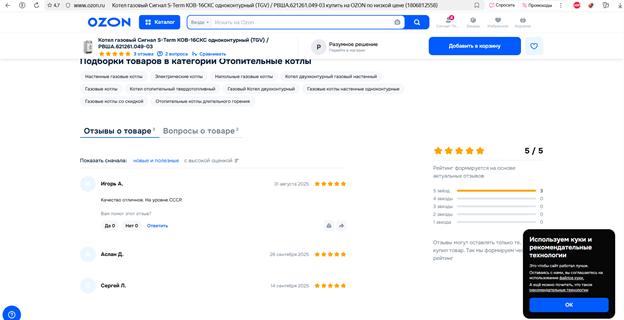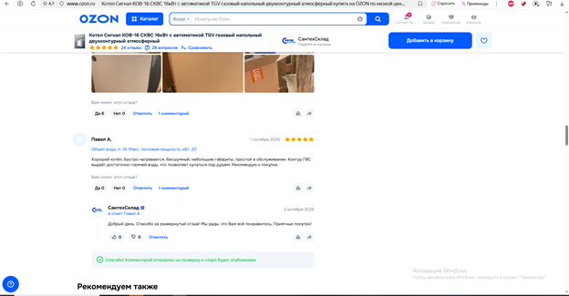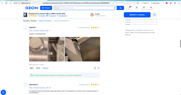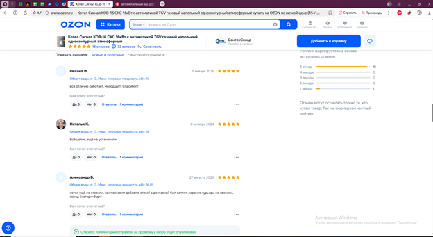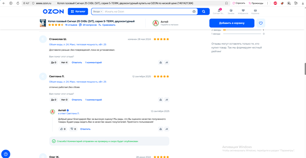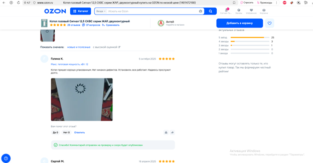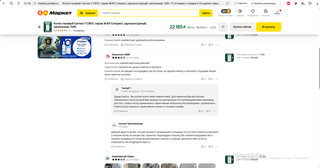 Как и обещали, теперь мы тщательно следим за рейтингами котлов "Сигнал" на разных площадках и оперативно реагируем на любые отзывы Клиентов.