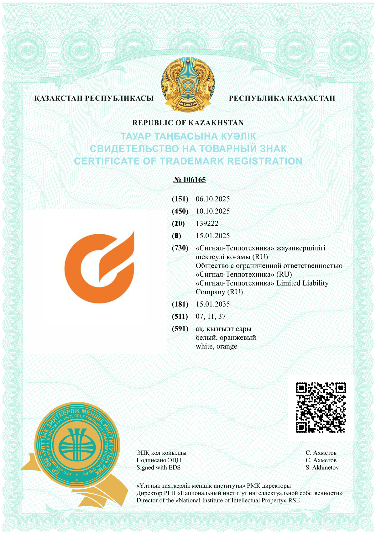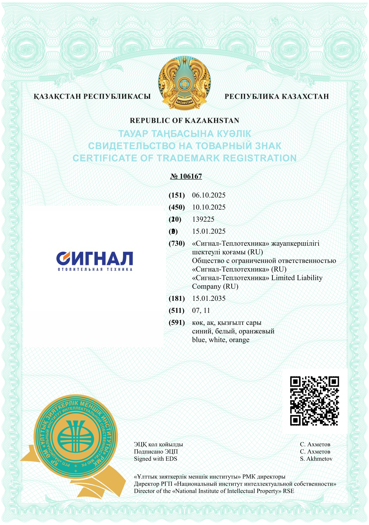 Зарегистрировали товарный знак "Сигнал" в Республике Казахстан!
